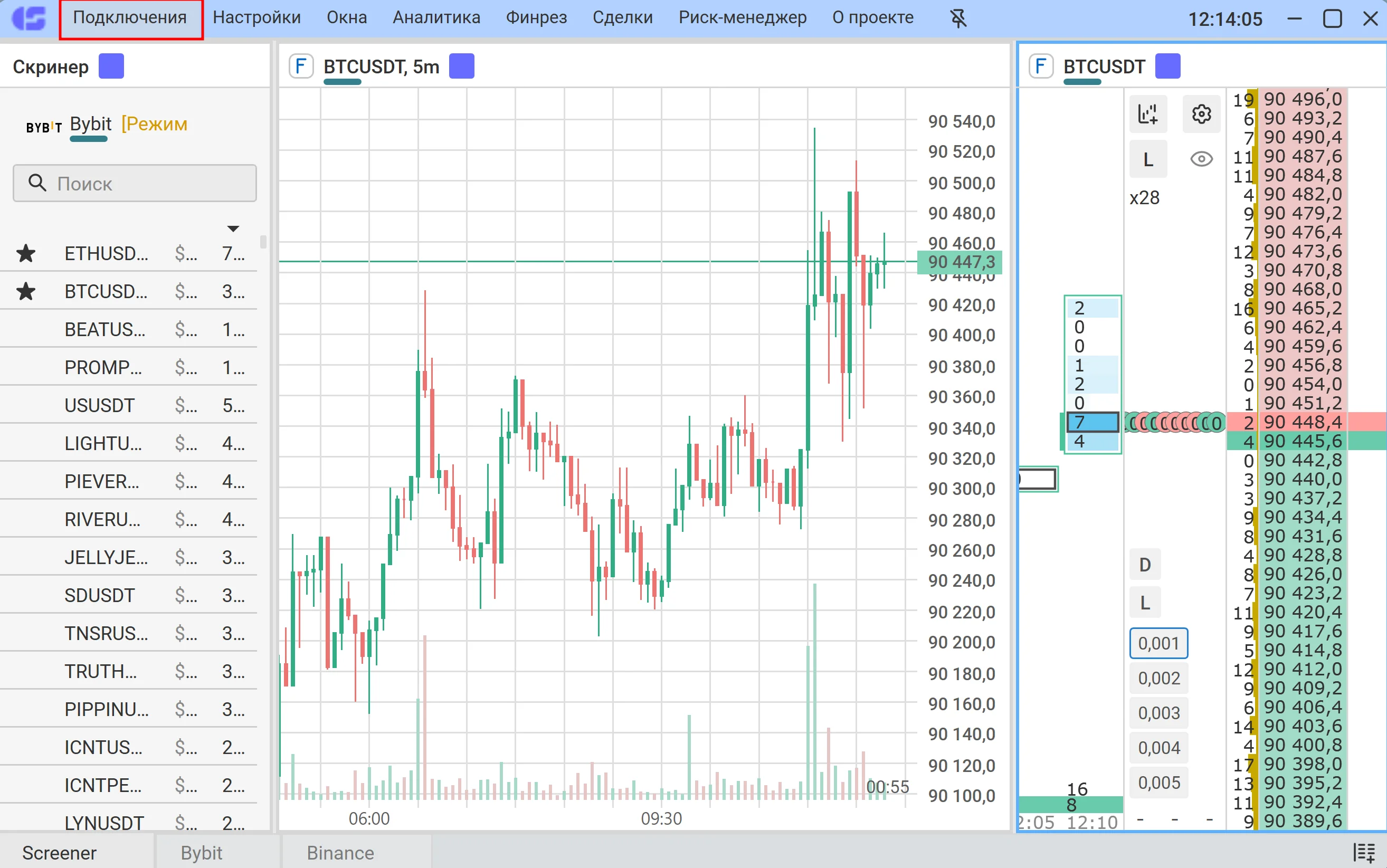 В окне Подключения из выпадающего списка справа выберите созданный вами ранее прокси. Подключение к бирже произойдет автоматически. Нажмите ОК, окно Подключения закроется.