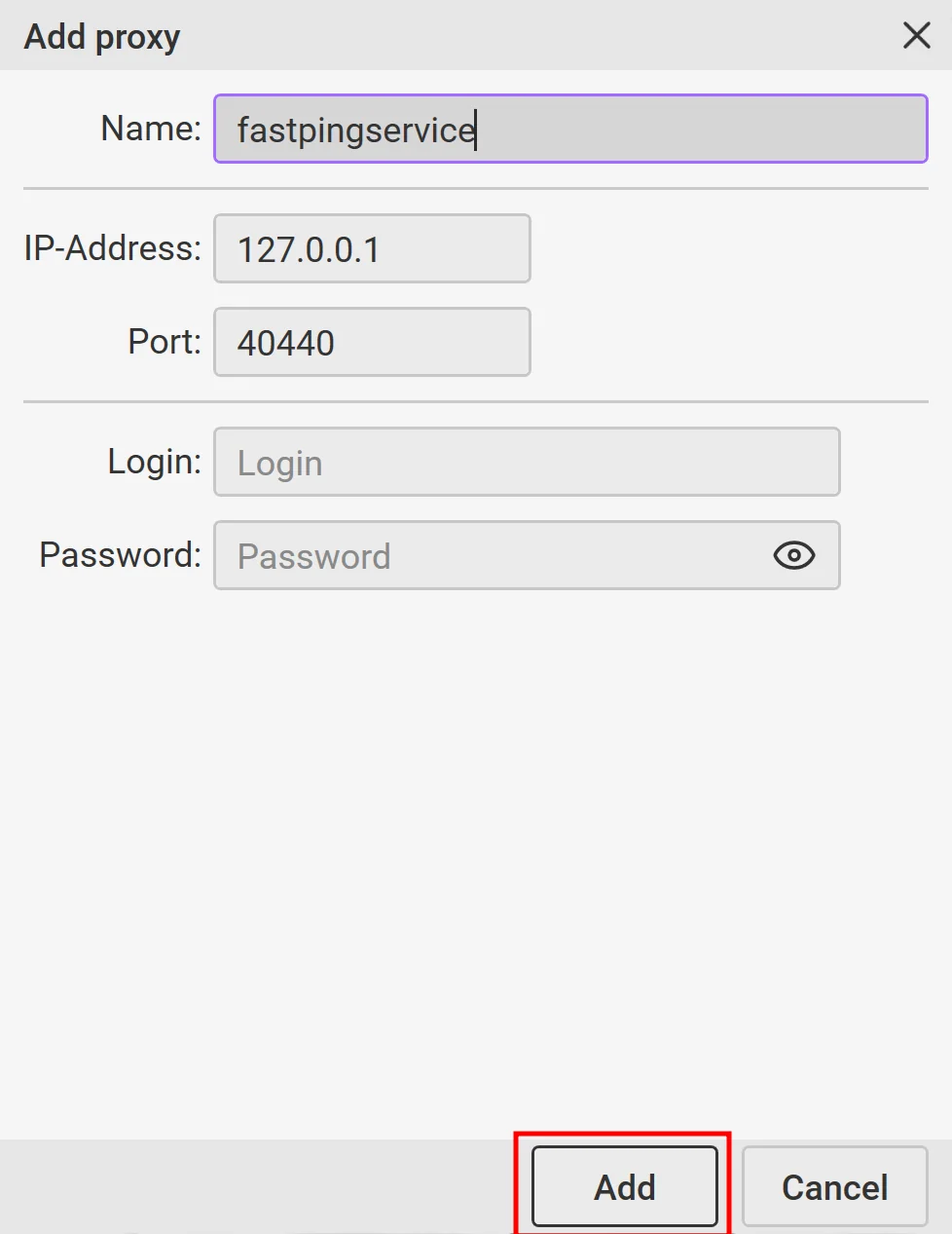 В левом верхнем углу окна терминала нажмите Подключения. В появившемся окне нажмите Мои прокси. В окне создания нового прокси нажмите Добавить прокси. Затем в поле Имя укажите название прокси. Рекомендуем изменить название на fastpingservice или любое другое понятное для вас название.
